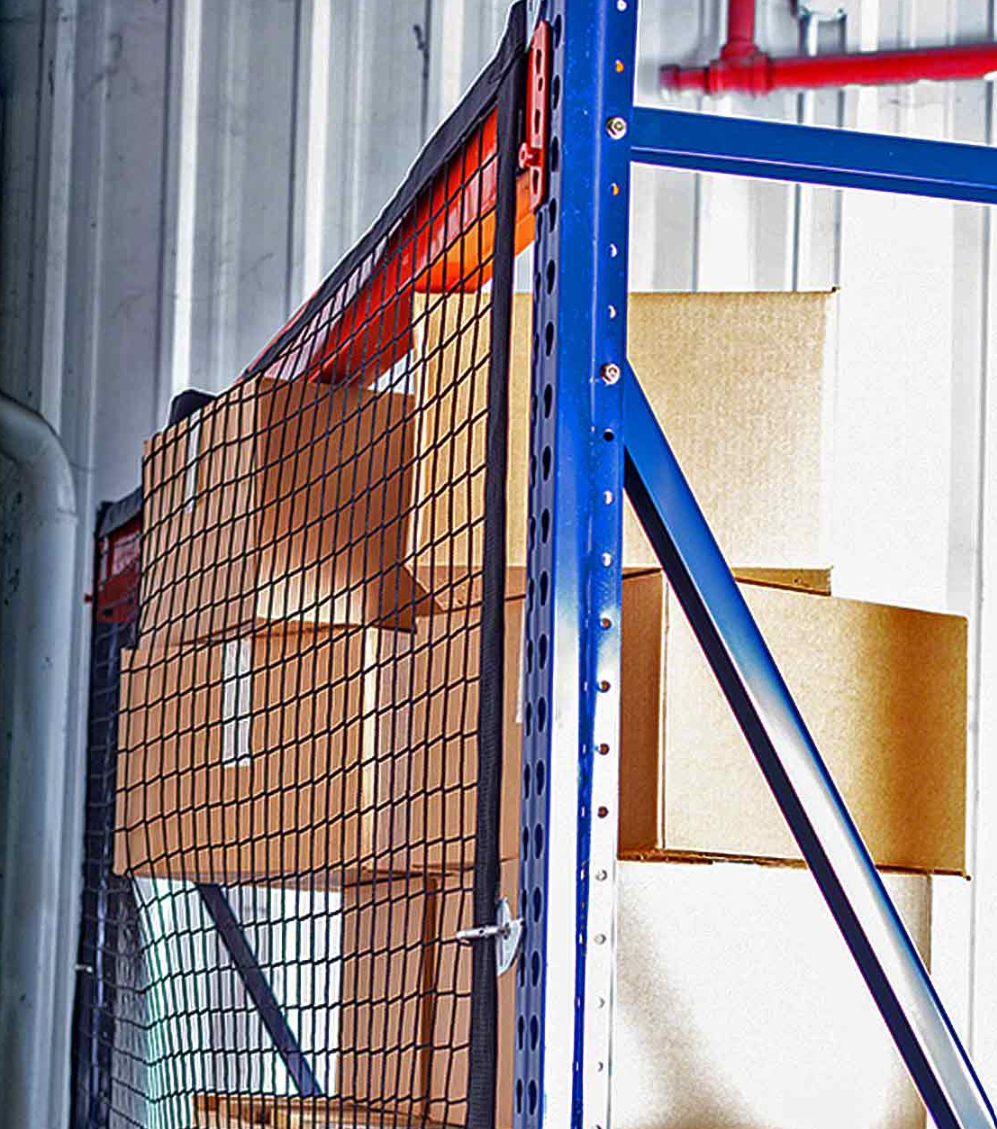 Netting is especially useful for catching smaller items that could slip through traditional racking.